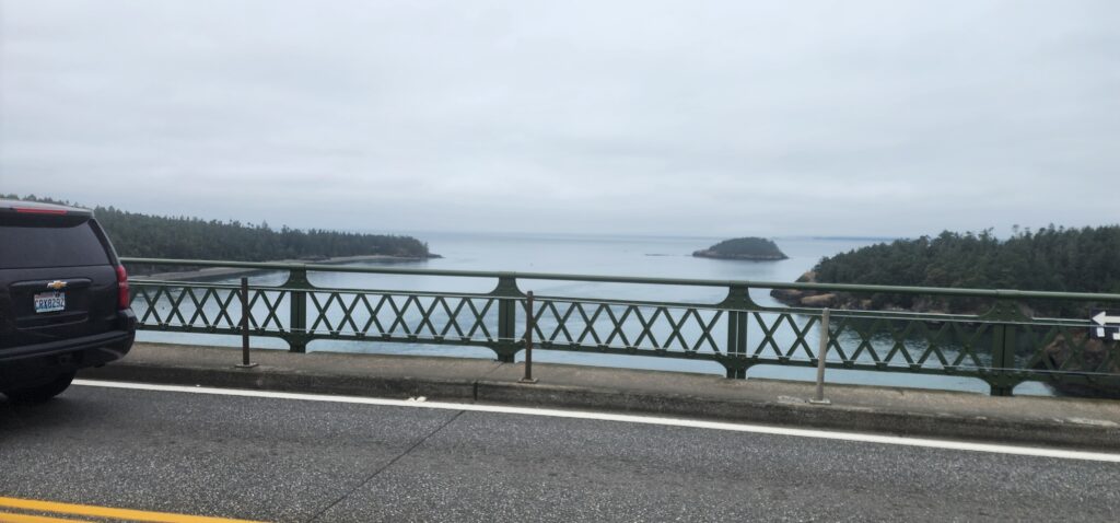 Saturday morning, we rolled out together. About 10 miles in, I broke away to tackle a hill solo. I love this route—it crosses a causeway over the bay at Anacortes and spans the dramatic Deception Pass bridge. The views are breathtaking, no matter how many times I’ve seen them.