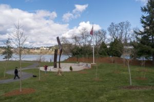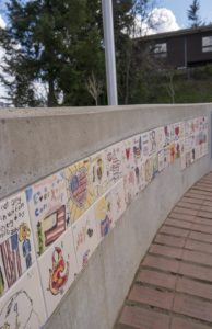 I racked up a lot of mileage walking to the Kitsap 9-11 Memorial, which was past about a quarter of a mile past the Manette Bridge. This memorial used two twisted beams that came from the twin towers in New York City. It also had a corner stone from the Pentagon. A short wall contained tiles that had been decorated by kids, honoring the heroes of this momentous event. You can read more about the memorial here.