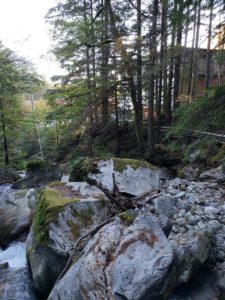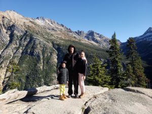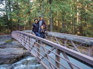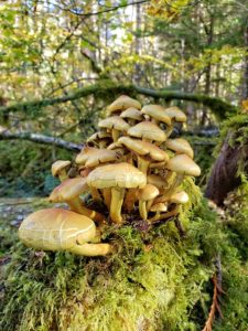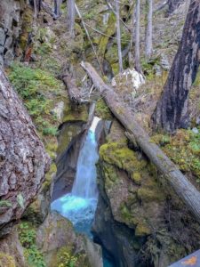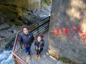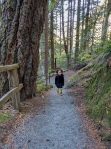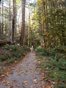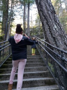 The first trail we did was the ladder creek falls trail. This trail was one that I couldn’t do in the past when I had bad knees, so I was keen to hike it. The trail isn’t that long, but there are a lot of steps. Besides seeing the waterfall, the forest was covered in mosses, lichen, ferns and mushrooms. It was fun teaching my grand-daughters the names of the ferns and mushrooms (I don’t remember the various names of mosses and lichens). I would quiz them every once in a while to see if they remembered.