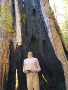 Our next trail was the trail of cedars, which starts with a suspension bridge over the river. There was evidence of long ago fires throughout the trail, with many of the cedars having “chimneys.” This happens when the fires burn out the inside of a tree.