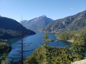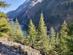 Next stop, Diablo Dam, which we drove across. On the other side, we parked and walked along part of it to get photos. Then, we pressed on to the Diablo Lake Overlook, which one of the most breath-taking views along the highway. The lake didn’t look emerald green like it usually does, so I’m assuming it was because of the time of year.