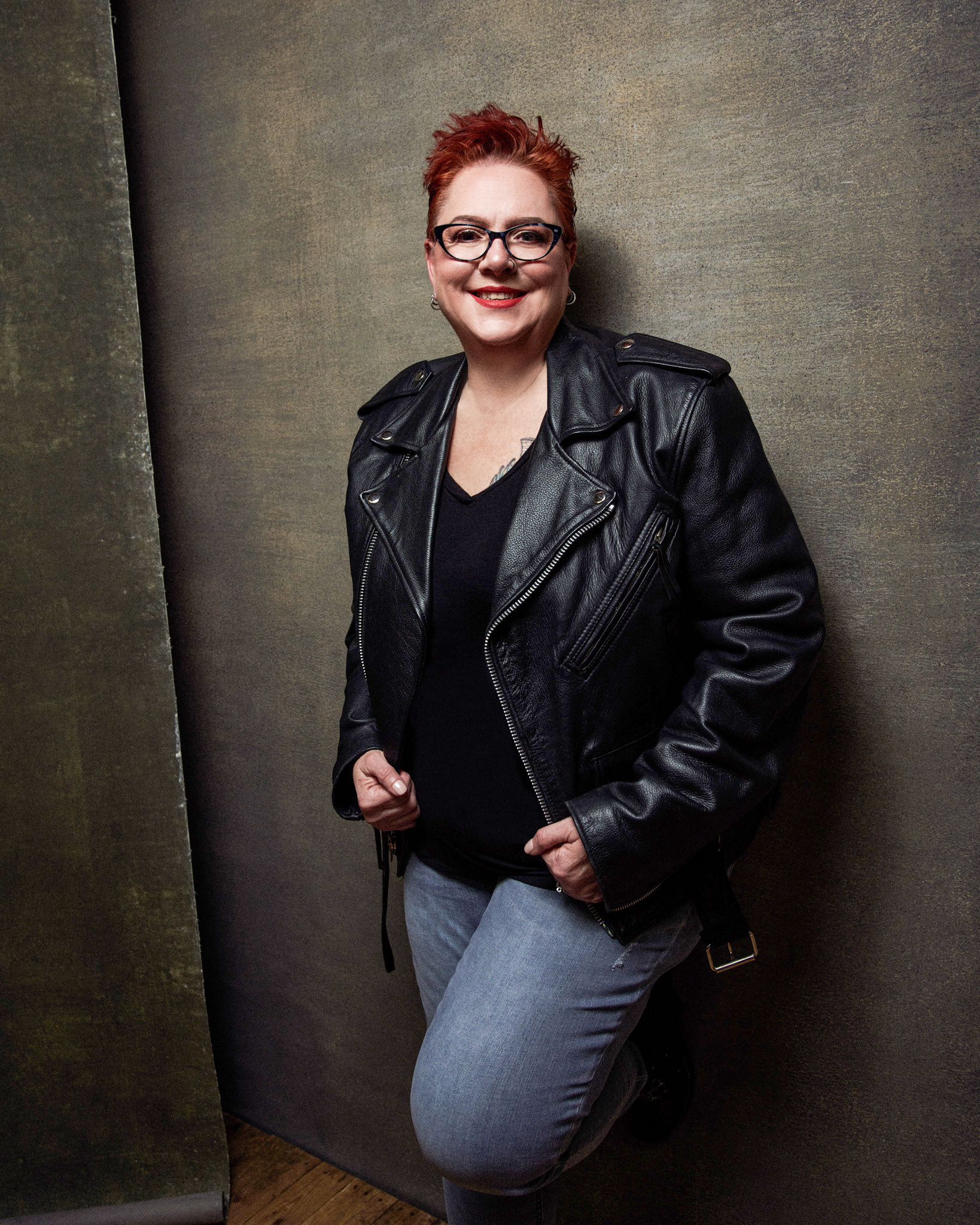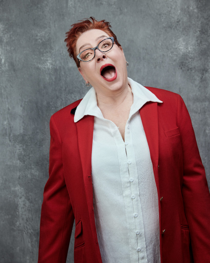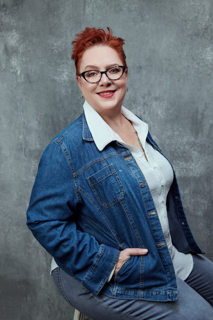Keeping on the jeans and boots, I switched to my white blouse and a blue denim jacket that Simon supplied. He had me sit on a stool for this one. After a few photos, I switched to a red jack and was asked to make funny faces.