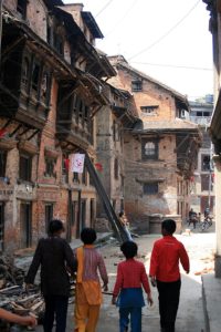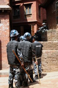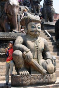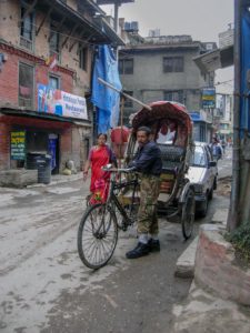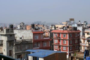 Since I had left the Bangkok airport, I had to pay the airport tax when I went to get my boarding pass for Kathmandu. The flight was around three hours, but we ended up circling Kathmandu for another 30 minutes due to weather. It seems that the pilots aren’t trained for instrument landing and can only land if they have a clear visual of the runway. As we touched down, it was a bit disturbing to see scrap planes along the runway! After getting my Visa and exiting immigrations, I hollered for Gopal and Goonja. They found me right away and presented me with a garland of marigolds. Earle was also there to meet me.