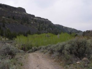 Our plan was to hike in five miles or so to a lake. About two-thirds of the way there, I heard a rattle snake and froze. I spotted the snake, which slithered off to the side into the brush. I had only taken two more steps when I saw another rattle snake to my left in a striking position. I panicked and ran as fast as I could haul my ass! And almost stepped on another rattle snake! Egads! What did I do…walk into a whole nest?! My brain finally told me it wasn’t smart to continue running, so I stopped, froze again, and tried to calm down. Meanwhile, Kathy was way behind, too scared to join me. She finally got brave and walked (fast) to my position. I don’t think I would have minded the one snake, but to have three back-to-back really freaked me out and I was tense the rest of the hike.