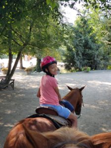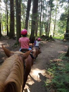 It was a hot day, but nice and cool in the forest, where we rode. The youngest, Avenleigh, was in the lead on her pony, Daisy. I was riding an Andalusian mix named Betty…she was gorgeous and so well mannered.