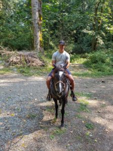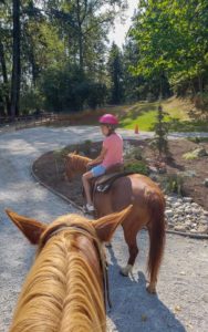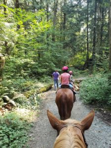 My Navy son’s ship just got back to Everett and he had a few days off, so I took him and my grand-daughters to Lang’s Horse & Pony Farm in Mt. Vernon for a 45 minute trail ride. It was the first time the girls rode horses outside of a ring, plus it was the first time they had control of the horse/pony by themselves. My son hadn’t ridden in at least a decade, maybe longer (I used to take him and his brother all the time when they were little).