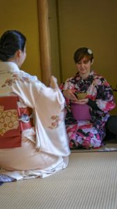 My friend, Christina, was dying and only had a few more months to live. She dreamed of going to Japan, but it just wasn’t going to happen for her. So, some friends and I chipped in and bought a kimono for her and arranged for her to be the guest of honor at a tea ceremony at the Japanese gardens. This is one of my favorite memories of Christina.