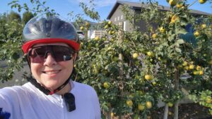 This was my third time riding the Lake Chelan Tour, but the first time doing it in the fall instead of the spring. I have to say that I much preferred the fall, in spite of the early morning chill, because the weather was more pleasant to ride in and the orchards were filled with fruit.