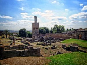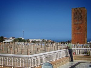 Up early for breakfast, then ride to Rabat. Very nice, buildings in better shape, near Mediterranean. Chellah in ancient Roman ruins with around 50 stork nests. Very hot in high 80s, making walking uphill hard.