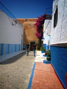 Next, a medina with blue and white houses. Beautiful! Lunch…fabulous restaurant with yummy tagines. I got a chicken tagine, but wish I would have gone with Grant’s recommendation of the meatballs.