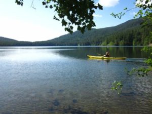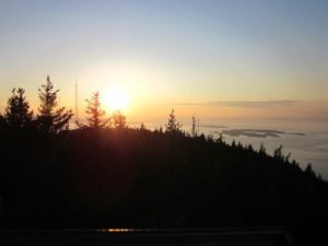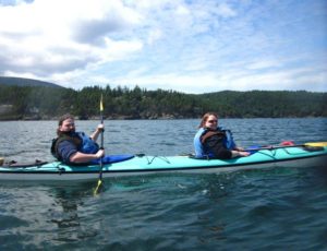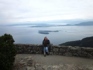 Next, we continued up to the top of Mount Constitution for a great view of the surrounding islands. Though the forecast didn’t predict any rain, it started to sprinkle while we were up there and the temperature dropped a bit. I grumbled because we were to go kayaking later in the afternoon and didn’t relish doing it in cold, wet weather.