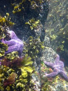 Near Point Lawrence, we paddled in close to the extremely high cliffs and discovered anemones and purple starfish. I had my camera in a water tight case, so I stuck it under the water and managed to get a pretty decent shot of the starfish (in spite of not being able to see what I was pointing the camera at and having the press controls through thick plastic).