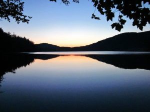 We finally got on the ferry after 7pm and got under way. The ferry trip is roughly an hour. We stretched our legs, then went back to the car to rest a bit. Once we made it to Orcas Island, we had about a 20 minute drive to reach Moran State Park, which was on the other end of the island. Orcas is chaped like a horseshoe, which means we headed north before heading back south.