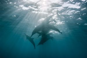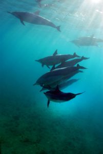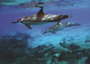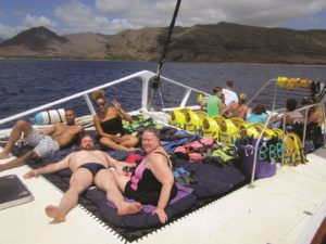 The catamaran was very large and comfortable. While traveling to our first snorkeling spot, we spotted many spinner dolphins.