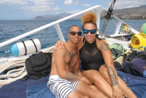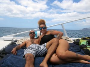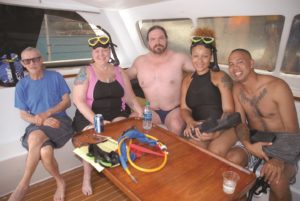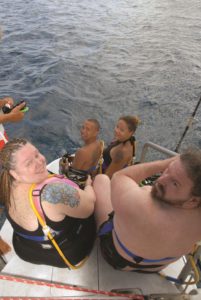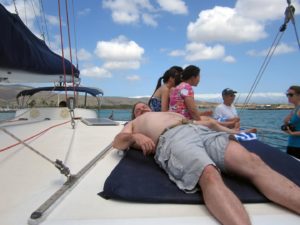 I was really looking forward to today’s activities. We were going to sail on a catamaran, do some snorkeling, then try snuba. Snuba is similar to scuba, except your tank is floating on the surface and you have a 20′ hose. Since you can’t go below 20′, you don’t need to be PADI certified.