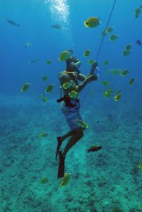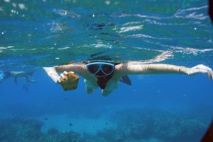 I didn’t take my mask and snorkel with me and soon regretted it. The mask didn’t fit my face properly, so it kept leaking water up to my eyeballs. Plus, the snorkel didn’t have a shut valve, so water would occasionally go down the tube (my snorkel has a valve to prevents any water from getting into the tube). Since my mask wouldn’t seal, it made me too nervous when we switched over to snuba. Due to my weight, the weight belt wasn’t really working. Between that and my loose mask, I had a panic attack when the dive instructor went to get more weights for my belt. I ended up taking photos from the surface, then handed the camera over to William to continue shooting pictures.