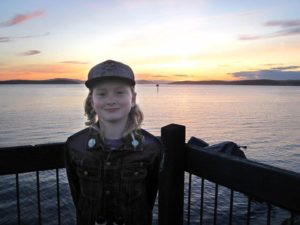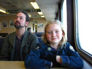 We left the house at 1pm so we would be in line in time for the 5:10pm ferry. While waiting for it, we had some snacks at a picnic table. Afterward, William and Jherek read from a comedia d’arte script that Ezra had written for the upcoming renaissance faire. Between the different character voices they used and Eleanor’s sound effects, it was really funny and I had lots of laughs. Anne also sang while playing her ukulele. After several hours, it was time to go back to our cars to get on the ferry.