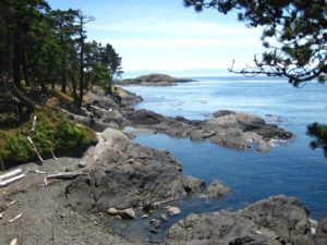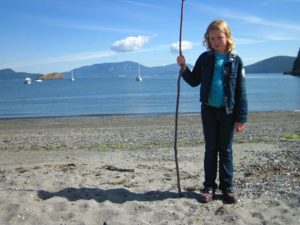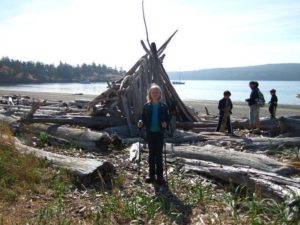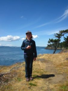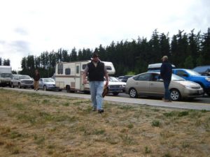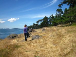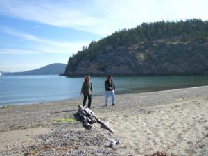 The ferry ride itself is only about 40 minutes long. The gang continued with the comedia d’arte skits to pass the time and provide laughs for all. Once at Lopez Island, we headed to Lopez Village to get our food supplies for the weekend, then headed for camp at Spencer Spit State Park.