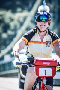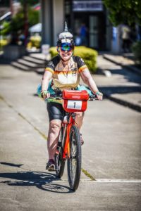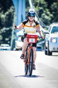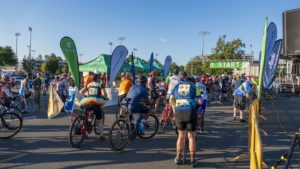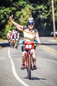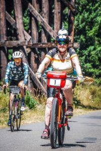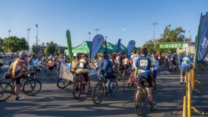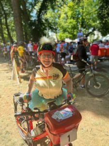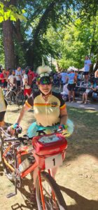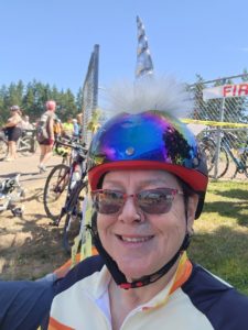 When I got to the start line waiting for the next group of riders to be given the go-ahead, Lee Lambert, Cascade’s director and emcee, noticed me and called out my name and bib number (#1) to the crowd. I got to wear the #1 bib because I was one of the volunteers of the year for 2022.