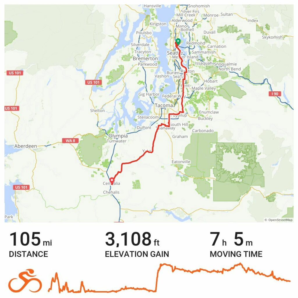 For some reason, my alarm didn’t go off at 4:30am on Sunday. But I heard everyone else starting to get up to beat the worst of the heat and got myself up. Once packed, I dropped my bags at the baggage truck then went to get some breakfast and coffee. By 6am, I hadn’t heard from Jean. I tried calling her several times between then and 7am. I was getting anxious, thinking she forgot me. Trains back to Seattle were sold out, even from Centralia. Jean finally answered right around 7am. She had overslept from exhaustion but would be there to pick me up by 7:30. After drinking more coffee, I collected my bike from the secured corral where it was charging overnight and waited near the baggage truck for Jean. That’s when I noticed that they were almost done loading and would be taking off soon. I asked if there was any way they could load my bike in the back since there was room. They said sure and loaded my bike. That was one thing I didn’t have to deal with until Portland.