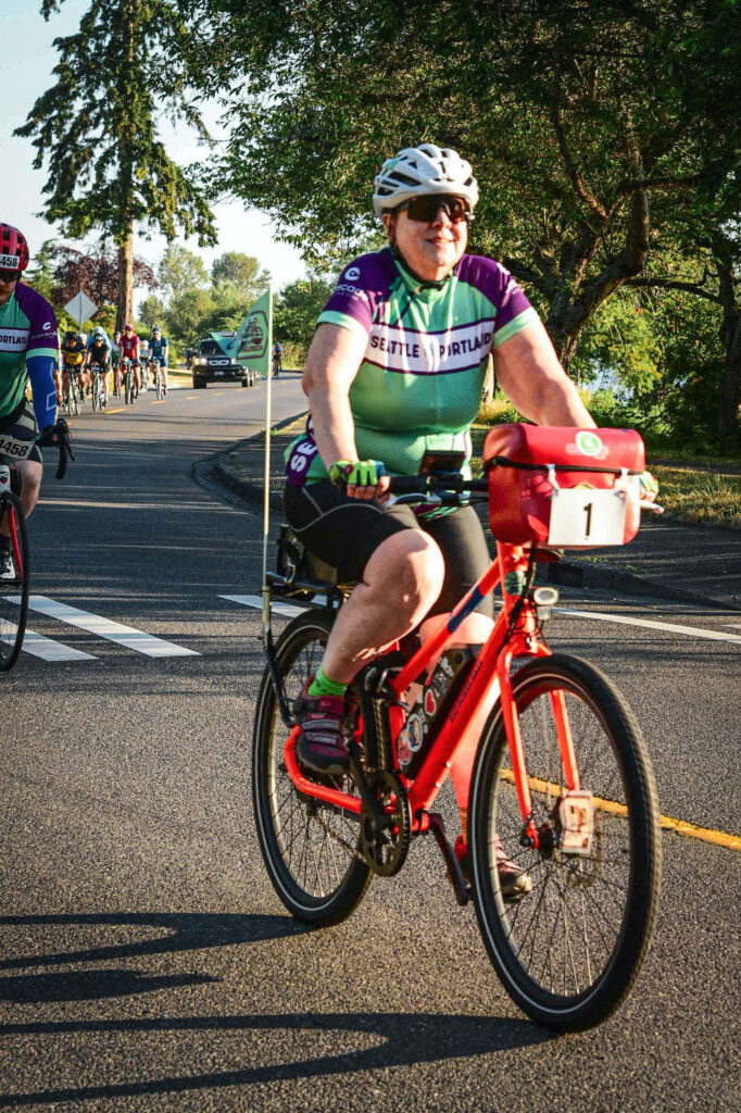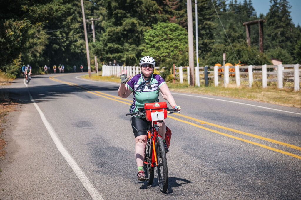 I had a really bad day one. I started with only three hours of sleep since I couldn’t turn my brain off. I stayed well hydrated with electrolytes and eating salty things. That changed when I got to Yelm. I started getting really bad leg cramps up my inner thighs and even down my arms from the shoulders. By the time I got to Centralia, I had terrible heat exhaustion…disoriented, stumbling, moving in slow motion, headache. It took me over 45 minutes to set up my tent, which usually only takes me five. I then went to the STP Ambassador room and cooled off in the AC, ate, drank more Gatorade, took a shower, and felt much better. I was exhausted and went back to my tent around 7pm, but it was still too hot and my legs started cramping again. Since I was camping, I couldn’t cool off again with AC. Things finally settled down around 9pm when the temperature dropped and I slept fairly well until morning.