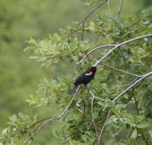 All the trails at the wetlands are easy and are ADA compliant. I was wearing my new unloader brace on my left knee, so I was glad for level walking services. I saw more birds than I saw since the weeds and reeds were quite tall. Red-winged blackbirds were abundant and I love listening to their song. I also saw goldfinches, swallows, sparrows, crows, and some killdeer. There were a pair of kingfishers hunting for food that were a delight to watch, but were too far away to get a decent photo.