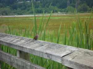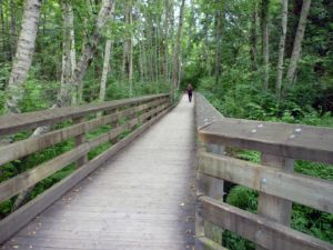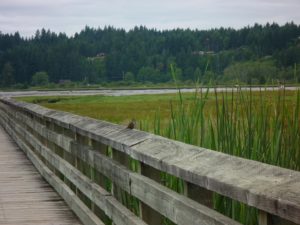 A short drive later, we arrived at the Wetlands. The sky was on the gray and cloudy side, but at least it wasn’t raining and the weather was pleasant. I was quite comfortable in my sweatshirt and capri length jeans.