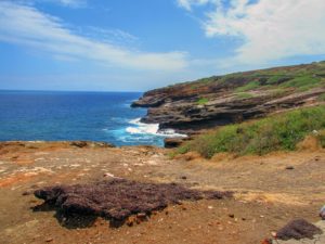 My CoPilot GPS took us back to Waikiki before heading east along the coast. One stop was Blowhole….where the waves crash into a lava tube and spits it out up on the rocks. It always amazes me at the stupidity of people….signs were posted that it was dangerous to go over the rail and down on the rocks where the waves were crashing, yet there were about half a dozen younger people standing over the blowhole, waiting for it to “erupt”.