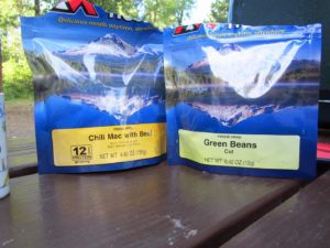 Since it was already evening, I made dinner from our freeze-dried stash again. This time it was Chili Mac and green beans. Again, really tasty!